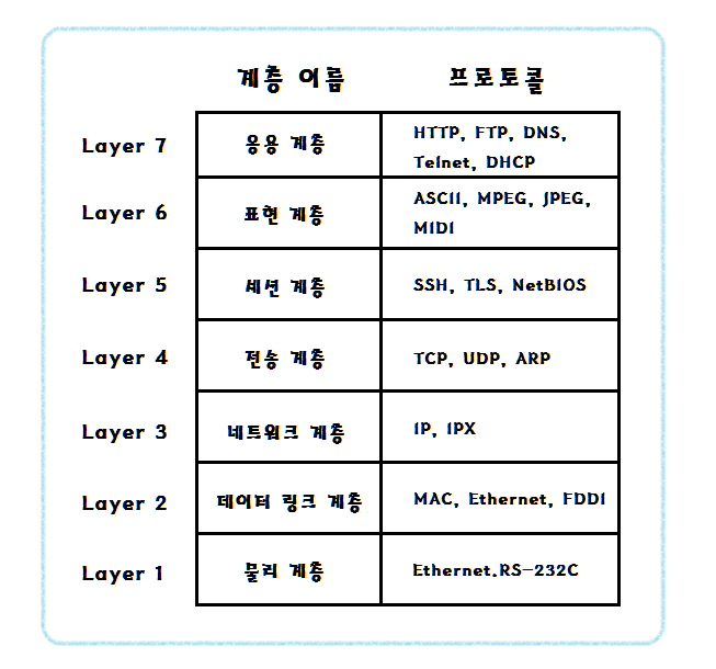 L7(Layer7)에서 사용하는 프로토콜은 HTTP, FTP, DNS 등이 있습니다.