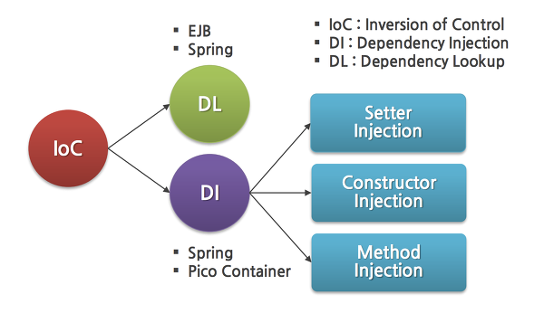 IoC의 대표적인 동작원리로 외부로부터 다이내믹하게 오브젝트를 주입받는 것을 말합니다.