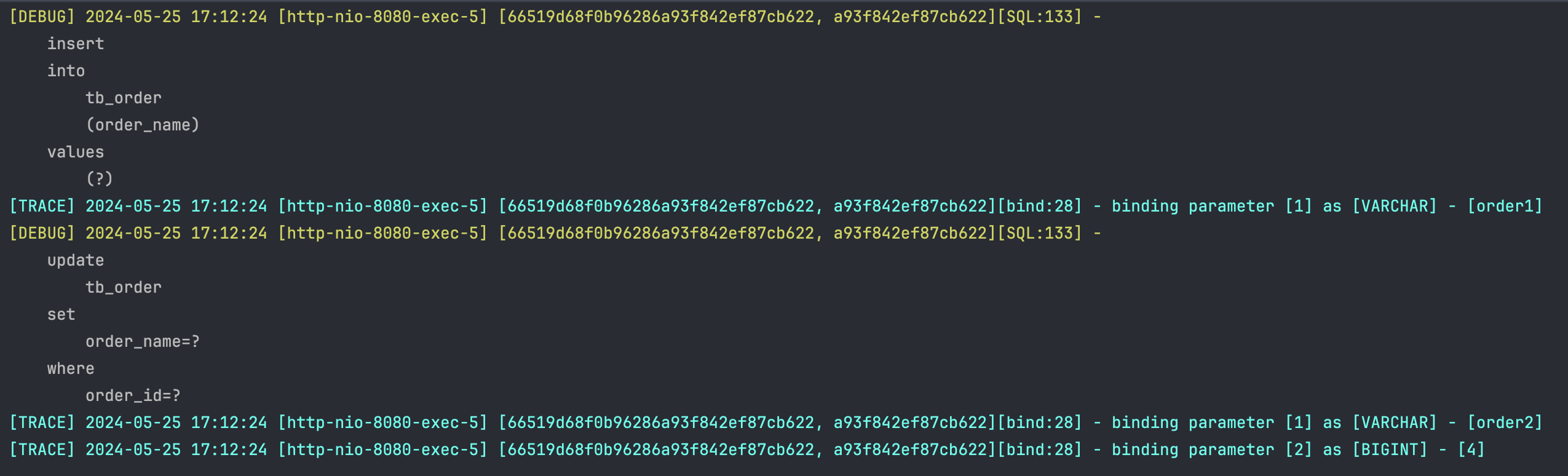 위에서 설명했던 것과 같이 child() 메서드의 @Transactional 은 실행되지 않았고 그로 인해 변경한 orderd의 name 은 "order2"로 변경되지 않았습니다.